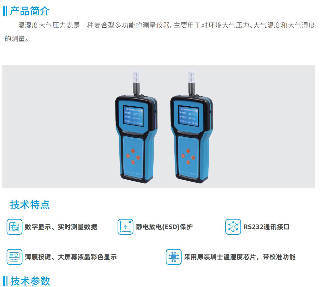 溫濕度大氣壓力表是一種復合型多功能的測量儀器。主要用于對環(huán)境大氣壓力、大氣溫度和大氣濕度的測量。